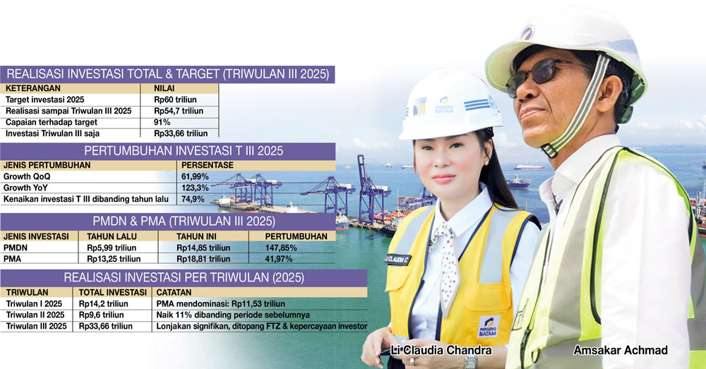 Upaya ini sejalan dengan tren pertumbuhan investasi di Batam yang menunjukkan penguatan sejak awal 2025. Pada triwulan I, realisasi investasi tercatat Rp14,2 triliun dengan PMA mendominasi sebesar Rp11,53 triliun. Pada triwulan II, investasi naik 11 persen menjadi Rp9,6 triliun. Lonjakan ini terjadi setelah Batam memperluas pengaruh ekonominya melalui FTZ.