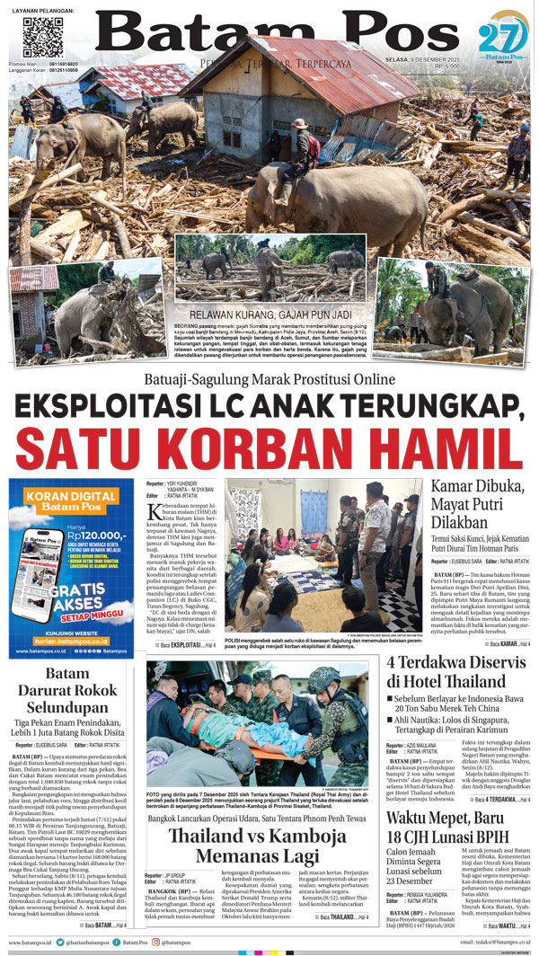 Silakan berlangganan untuk bisa membaca keseluruhan berita di Harian Batam Pos. ﹢ Berlangganan Baca Juga WhatsAppTelegram 9 Desember 2025 9 Desember 2025 Buka konten iniDengan mendaftarkan diri Anda di Harian Batam Pos, Anda akan mendapatkan akses penuh ke seluruh konten.SubscribeKami tidak akan mengirimkan email yang tidak berkaitan dengan akun Anda.Saya setuju untuk memperoses data saya sesuai dengan Aturan Layanan yang disediakan.