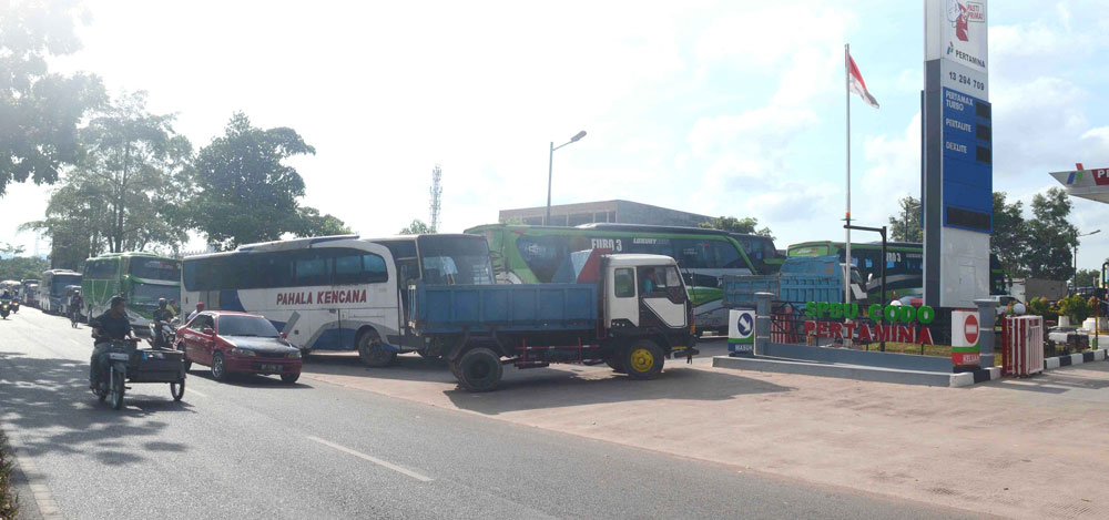 “Dua hari ini antre setengah jam lebih. Jadi terlambat kirim ke pelanggan,” keluh Dika, sopir pikap di kawasan Batuaji.