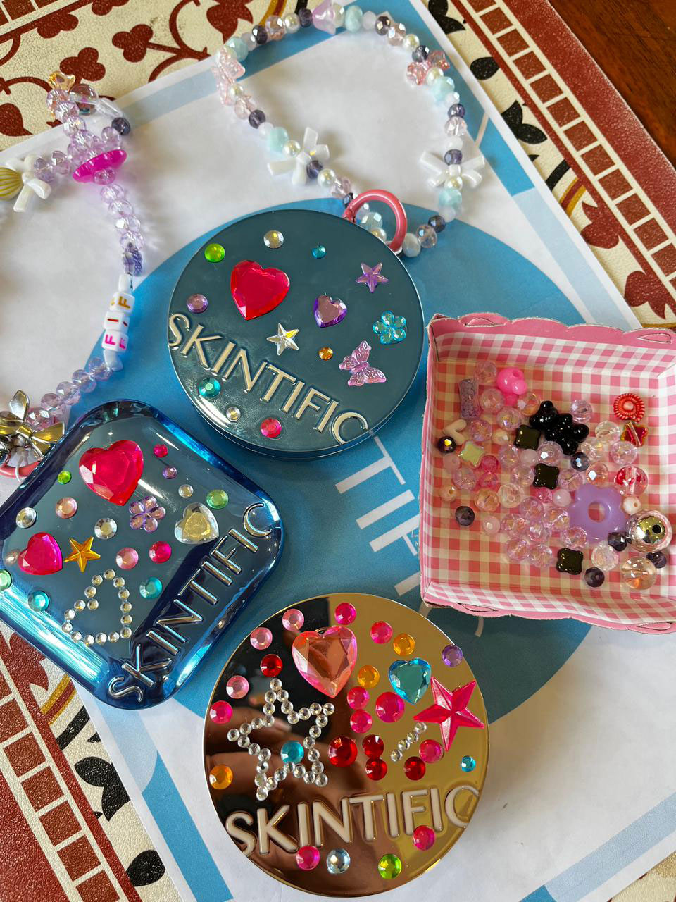 ”Untuk saat ini saya buat phone strap, bag charm, keychain, jam manik, cincin, gelang, kalung, bros, mini buket manik, dan lain-lain, mulai dari 5 ribu sampai 150 ribu,” sebutnya.