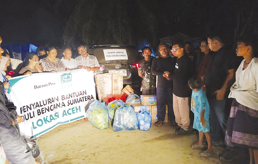 Ketua LAZ Batam, Syarifuddin, bersama tim berkeliling ke lima titik pengungsian di wilayah Aceh Tamiang untuk mendistribusikan bantuan donasi masyarakat Batam dan Kepulauan Riau yang disalurkan melalui LAZ Batam bekerja sama dengan Batam Pos. Proses distribusi berlangsung hingga pukul 00.00 WIB di sejumlah lokasi pengungsian.