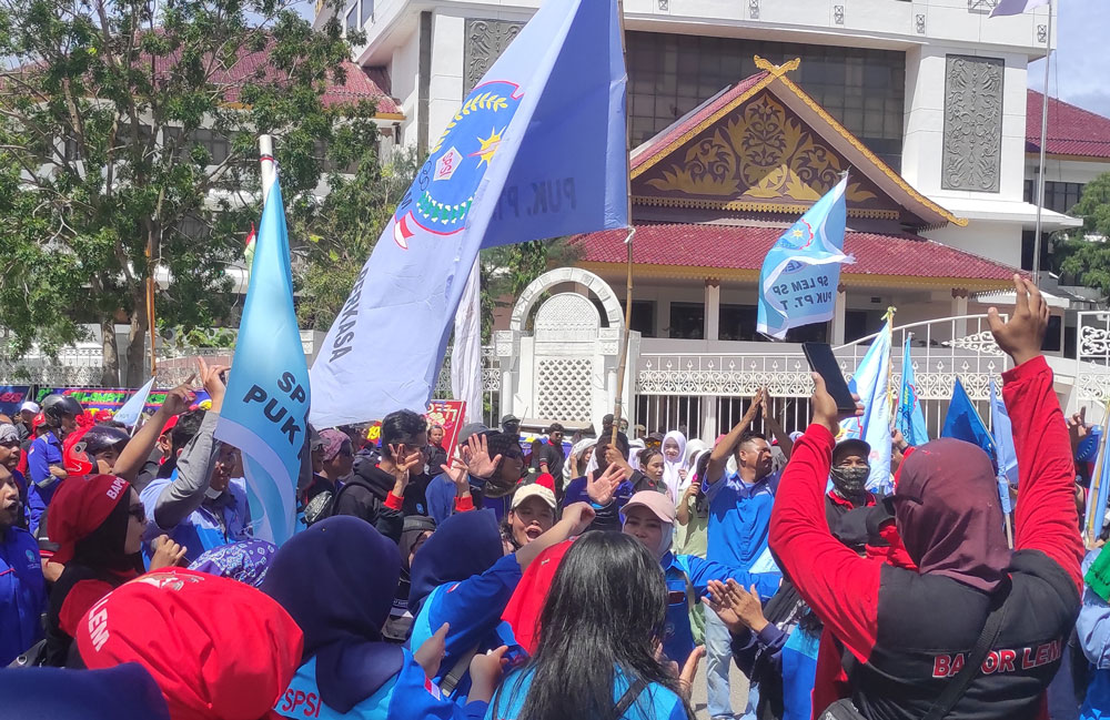 Di sisi lain kota, ratusan buruh turun ke jalan. Mereka memadati kawasan depan Kantor Wali Kota dan DPRD Batam, menyuarakan tuntutan terkait hak dan kesejahteraan. Spanduk dibentangkan, orasi bergema, dan barisan aparat bersiaga mengawal jalannya demonstrasi. Aksi ini menjadi penegas bahwa suara buruh masih terus mencari ruang didengar di tengah dinamika ekonomi Batam.