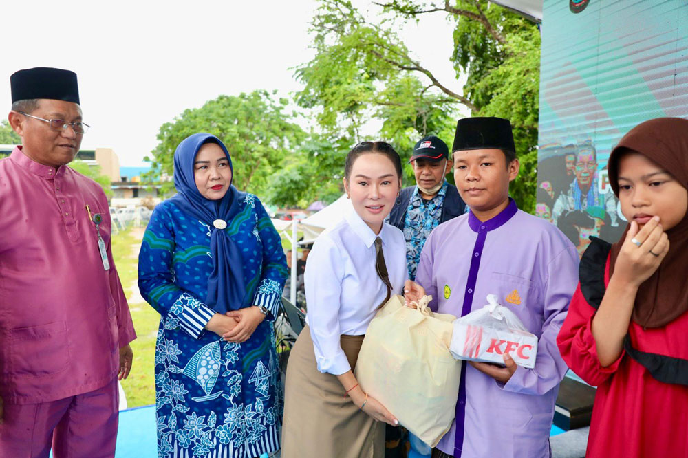 Wakil Wali Kota Batam yang juga Wakil Kepala BP Batam, Li Claudia Chandra, memberikan santunan kepada 1.000 anak yatim di Lapangan Bola Legenda Malaka, Batam Center, Senin (15/12). F. Istimewa untuk Batam Pos
