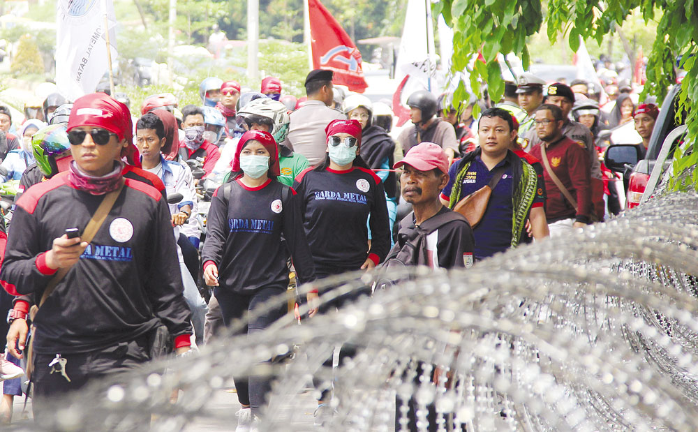 “Pekerjaan di ketinggian, bersentuhan dengan bahan kimia berbahaya, risikonya langsung ke nyawa dan kesehatan. Itu harus dibedakan secara upah,” kata Yapet.