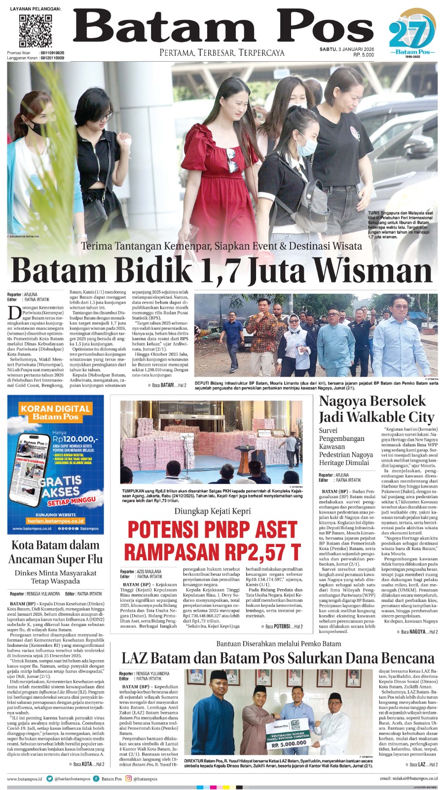 Silakan berlangganan untuk bisa membaca keseluruhan berita di Harian Batam Pos. ﹢ Berlangganan Baca Juga 13 Februari 2026 13 Februari 2026 WhatsAppTelegram 3 Januari 2026 3 Januari 2026 Buka konten iniDengan mendaftarkan diri Anda di Harian Batam Pos, Anda akan mendapatkan akses penuh ke seluruh konten.SubscribeKami tidak akan mengirimkan email yang tidak berkaitan dengan akun Anda.Saya setuju untuk memperoses data saya sesuai dengan Aturan Layanan yang disediakan.
