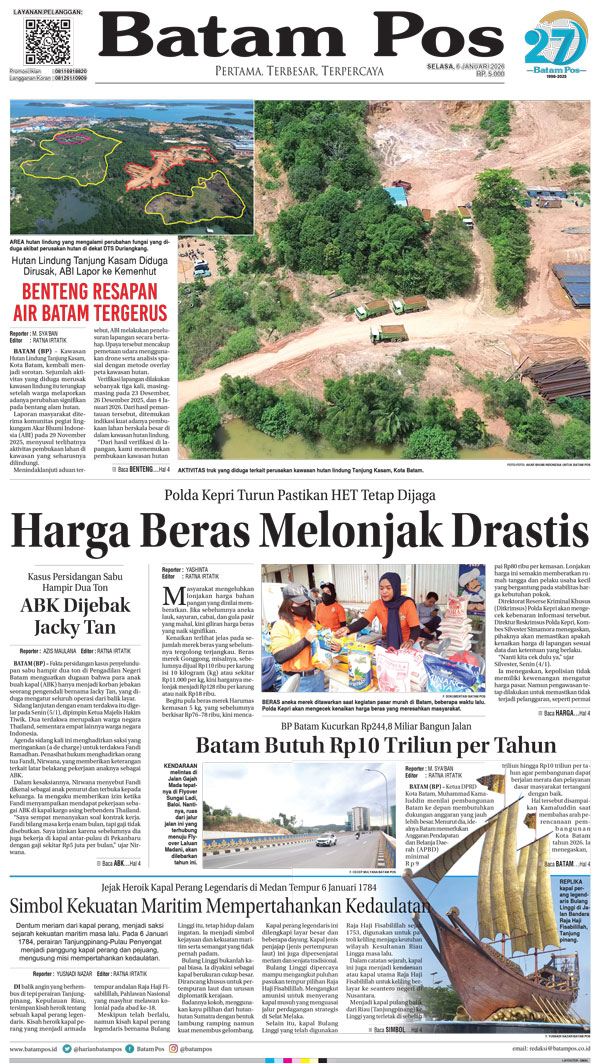 Silakan berlangganan untuk bisa membaca keseluruhan berita di Harian Batam Pos. ﹢ Berlangganan Baca Juga 13 Februari 2026 13 Februari 2026 WhatsAppTelegram 6 Januari 2026 6 Januari 2026 Buka konten iniDengan mendaftarkan diri Anda di Harian Batam Pos, Anda akan mendapatkan akses penuh ke seluruh konten.SubscribeKami tidak akan mengirimkan email yang tidak berkaitan dengan akun Anda.Saya setuju untuk memperoses data saya sesuai dengan Aturan Layanan yang disediakan.