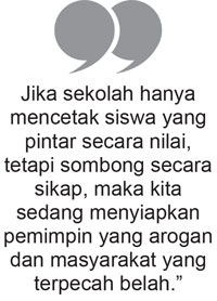 Jika sekolah hanya mencetak siswa yang ”pintar” secara nilai tetapi ”sombong” secara sikap, maka kita sedang menyiapkan pemimpin yang arogan dan masyarakat yang terpecah belah.