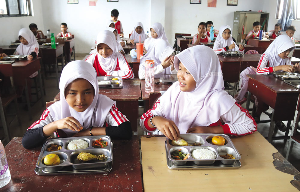 Pantauan Batam Pos di lokasi menunjukkan para murid tampak antusias menerima makanan. Anak-anak terlihat berbondong-bondong mengambil dan menikmati menu yang disediakan.