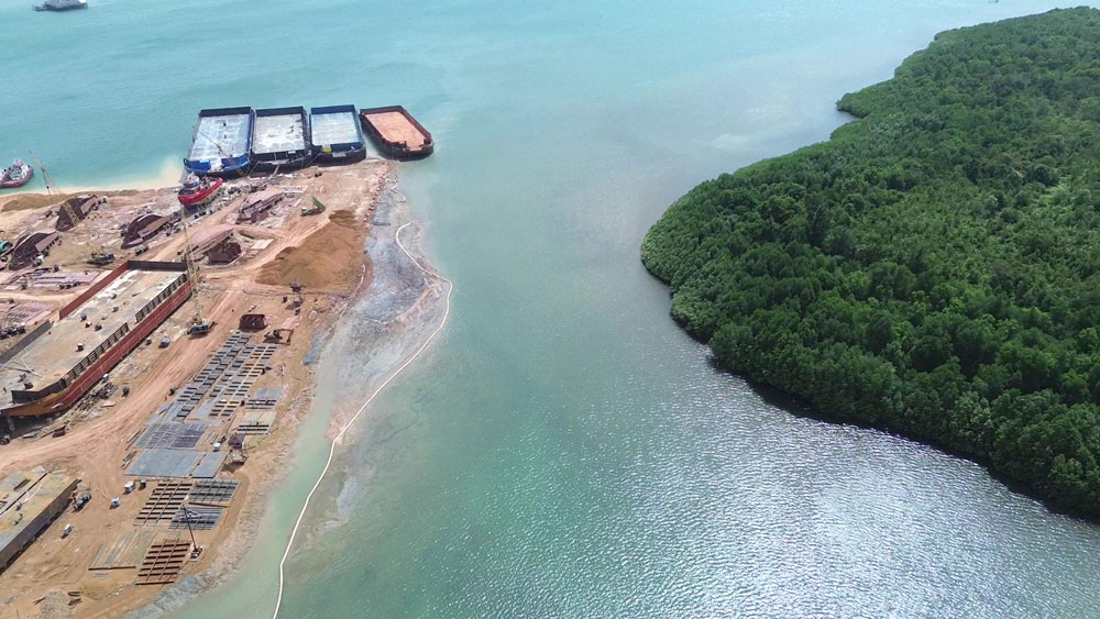 Ironisnya, material tanah hasil pemotongan hutan lindung tersebut diduga dimanfaatkan untuk penimbunan laut di kawasan pesisir yang tidak jauh dari lokasi hutan. Reklamasi itu disebut-sebut dipersiapkan untuk mendukung aktivitas galangan kapal.