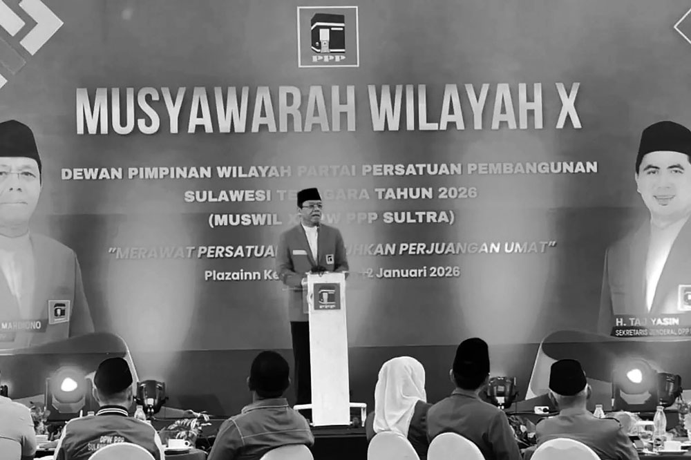 SULTENG (BP) – Ketua Umum DPP Partai Persatuan Pembangunan (PPP), Muhamad Mardiono, menegaskan bahwa orientasi kerja elektoral harus menjadi fokus utama seluruh kader dalam merumuskan strategi politik partai. Penegasan tersebut disampaikan saat ia membuka Musyawarah Wilayah (Muswil) DPW PPP Sulawesi Tenggara yang digelar di Kendari, Senin (12/1).