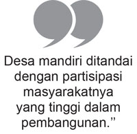 Desa mandiri juga ditandai dengan partisipasi masyarakatnya yang tinggi dalam pembangunan. Warga terlibat aktif dalam perencanaan, pelaksanaan, serta pengelolaan pembangunan. Di sinilah perlunya musrenbangdes dan rapat-rapat lain. Budaya gotong royong harus tetap menjadi landasan utama dalam membangun desa dengan partisipasi aktif masyarakat.