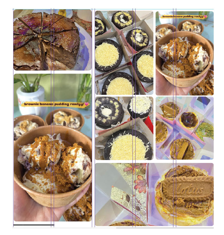 “Bolu ketan hitam keju lumer , yang dari zaman viral sampai sekarang masih menjadi best seller, dan juga brownie banana pudding,” sebutnya. “Saya juga sering mengikuti tren dengan menjual menu-menu viral, seperti cheesecake Tom & Jerry dan dessert viral lainnya,” imbuhnya.