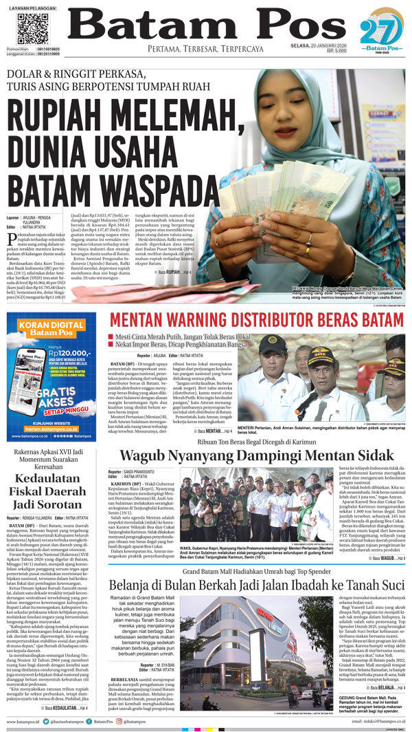 Silakan berlangganan untuk bisa membaca keseluruhan berita di Harian Batam Pos. ﹢ Berlangganan Baca Juga 13 Februari 2026 13 Februari 2026 WhatsAppTelegram 20 Januari 2026 20 Januari 2026 Buka konten iniDengan mendaftarkan diri Anda di Harian Batam Pos, Anda akan mendapatkan akses penuh ke seluruh konten.SubscribeKami tidak akan mengirimkan email yang tidak berkaitan dengan akun Anda.Saya setuju untuk memperoses data saya sesuai dengan Aturan Layanan yang disediakan.
