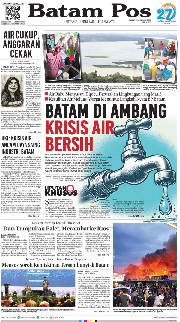 Silakan berlangganan untuk bisa membaca keseluruhan berita di Harian Batam Pos. ﹢ Berlangganan Baca Juga 13 Februari 2026 13 Februari 2026 WhatsAppTelegram 21 Januari 2026 21 Januari 2026 Buka konten iniDengan mendaftarkan diri Anda di Harian Batam Pos, Anda akan mendapatkan akses penuh ke seluruh konten.SubscribeKami tidak akan mengirimkan email yang tidak berkaitan dengan akun Anda.Saya setuju untuk memperoses data saya sesuai dengan Aturan Layanan yang disediakan.