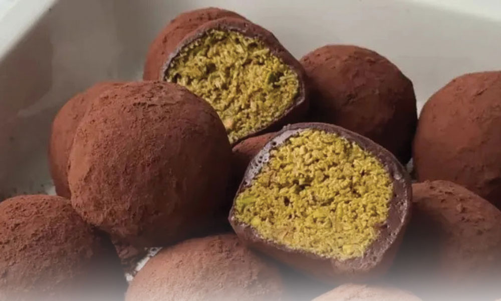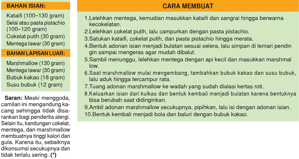 Bagian luarnya terasa elastis menyerupai mochi. Sementara bagian dalamnya memberikan sensasi renyah berkat isian kataifi, adonan tipis memanjang mirip benang atau mi halus yang kerap digunakan dalam sajian penutup khas Timur Tengah.