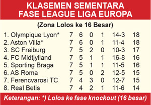 Di Stadion Wankdorf, Bern, Les Gones – julukan OL– mengalahkan BSC Young Boys dengan skor 1-0. Hasil yang memastikan skuad besutan Paulo Fonseca melangkah ke fase knockout atau 16 besar bersama wakil Premier League, Aston Villa.