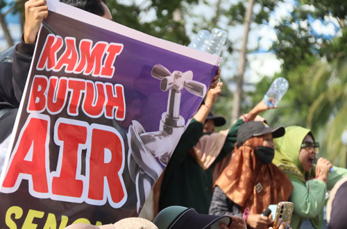 “Alhamdulillah, air sudah mengalir seperti sediakala walaupun belum begitu besar,” katanya. Ia bilang, kebutuhan air tangki pun menurun seiring kembalinya aliran air. Dari semula mengajukan 17 tangki, kini hanya memesan 5 sampai 6 tangki per hari sebagai cadangan.