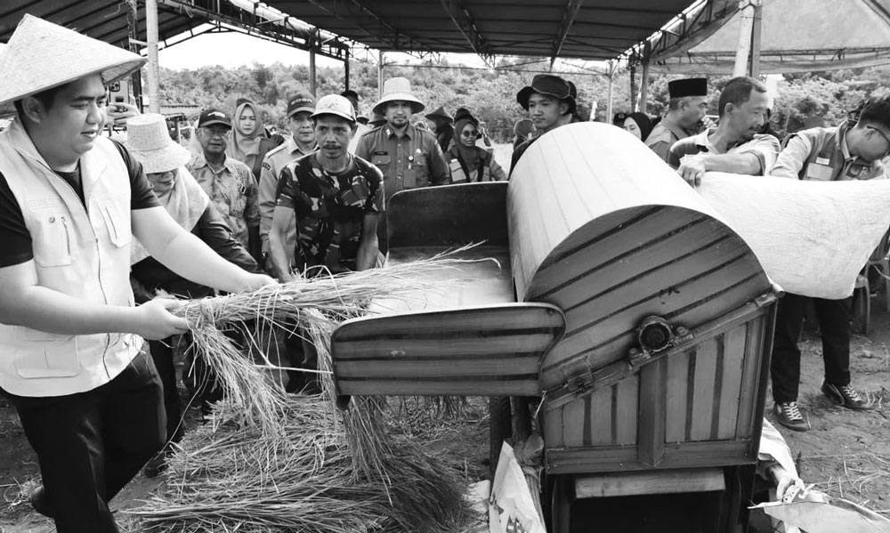 Panen perdana ini merupakan hasil kerja Kelompok Tani (Poktan) Maju Jaya yang mengembangkan padi gogo di lahan kering.