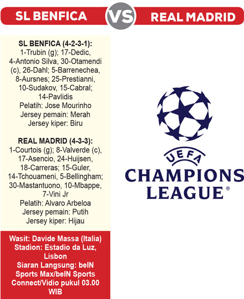 ”Pertandingan melawan Real Madrid seperti final bagi Benfica. Juga ujian apakah kami kompetitif di kompetisi ini (Liga Champions),” kata Mourinho kepada O Jogo.