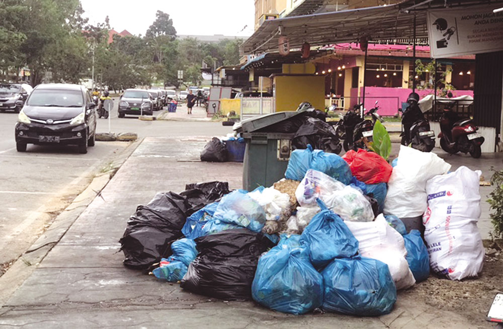 TUMPUKAN sampah berserakan disertai bau menyengat hampir sepekan terakhir menghantui kawasan pusat Kota Batam. Sampah rumah makan dan pertokoan terlihat menumpuk di sepanjang Jalan Raja M. Tahir, tepatnya di deretan pertokoan Greenland, Batam Center, tanpa pengangkutan dari petugas kebersihan.