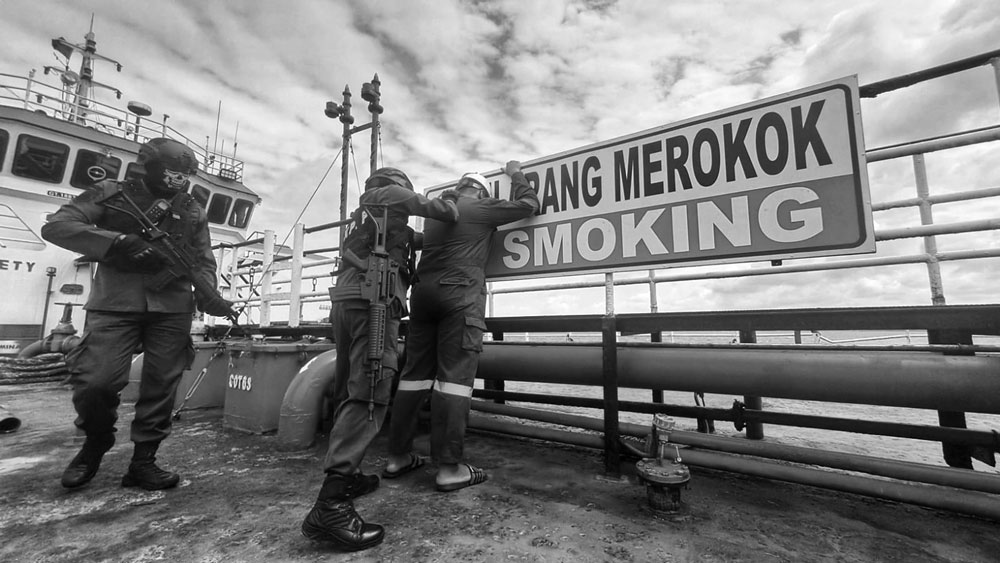 Usai pemeriksaan, kapal tanker tersebut diamankan sebagai bagian dari skenario latihan.