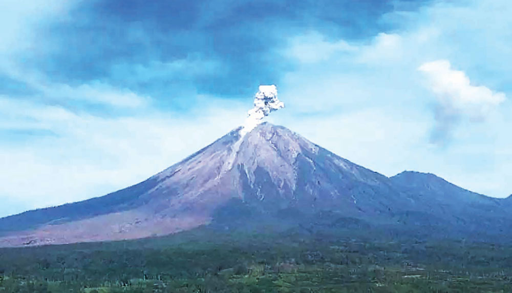 LUMAJANG (BP) – Gunung Semeru di Kabupaten Lumajang, Jawa Timur, kembali erupsi, Kamis (29/1). Jarak luncuran material letusan hampir mencapai 1 kilometer dan berpotensi memicu awan panas guguran (APG).