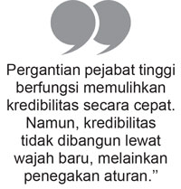 Namun, kredibilitas tidak dibangun lewat wajah baru, melainkan melalui penegakan aturan. Pertanyaan substantif yang membedakan reformasi nyata dari reformasi ritual adalah apakah aturan-aturan itu akan benar-benar diterapkan ketika menyentuh kepentingan kepemilikan yang kuat dan apakah produksi data mengenai kepemilikan, afiliasi, serta klasifikasi akan stabil, dapat diverifikasi, dan tidak dinegosiasikan kasus per kasus?