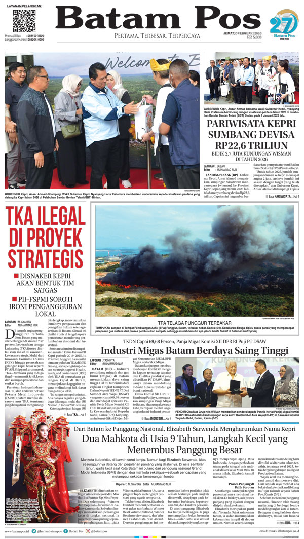 Silakan berlangganan untuk bisa membaca keseluruhan berita di Harian Batam Pos. ﹢ Berlangganan Baca Juga 13 Februari 2026 13 Februari 2026 WhatsAppTelegram 6 Februari 2026 6 Februari 2026 Buka konten iniDengan mendaftarkan diri Anda di Harian Batam Pos, Anda akan mendapatkan akses penuh ke seluruh konten.SubscribeKami tidak akan mengirimkan email yang tidak berkaitan dengan akun Anda.Saya setuju untuk memperoses data saya sesuai dengan Aturan Layanan yang disediakan.