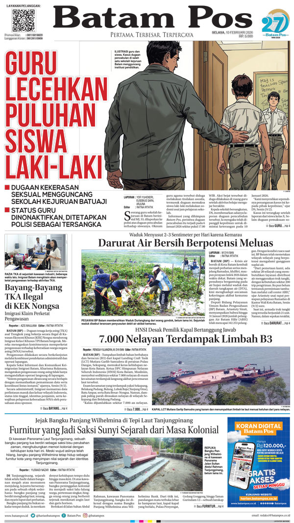 Silakan berlangganan untuk bisa membaca keseluruhan berita di Harian Batam Pos. ﹢ Berlangganan Baca Juga 13 Februari 2026 13 Februari 2026 WhatsAppTelegram 10 Februari 2026 10 Februari 2026 Buka konten iniDengan mendaftarkan diri Anda di Harian Batam Pos, Anda akan mendapatkan akses penuh ke seluruh konten.SubscribeKami tidak akan mengirimkan email yang tidak berkaitan dengan akun Anda.Saya setuju untuk memperoses data saya sesuai dengan Aturan Layanan yang disediakan.