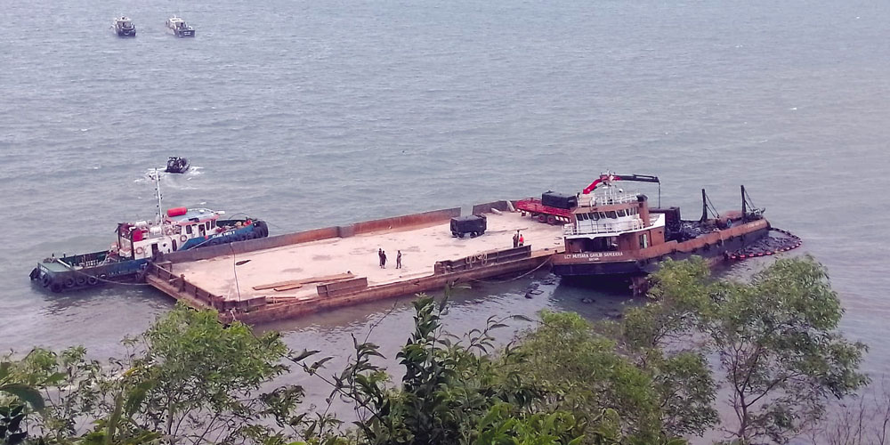 Terkait kapal yang diduga menjadi sumber tumpahan limbah, Yudi memastikan kapal tersebut telah dipindahkan dari lokasi kejadian. Selanjutnya, penanganan dampak lingkungan menjadi kewenangan DLH.
