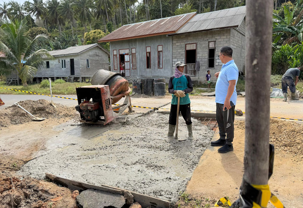 Bupati Kepulauan Anambas, Aneng, turun langsung meninjau lokasi perbaikan jalan, Senin (9/2). Ia mengapresiasi kolaborasi yang terjalin antara pihak swasta dan pemerintah desa.