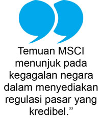 Bagi investor, ketidakjelasan itu meningkatkan risiko karena harga saham bisa tidak mencerminkan kondisi pasar yang sesungguhnya. Dengan kata lain, temuan MSCI menunjuk pada kegagalan negara dalam menyediakan regulasi pasar yang kredibel.