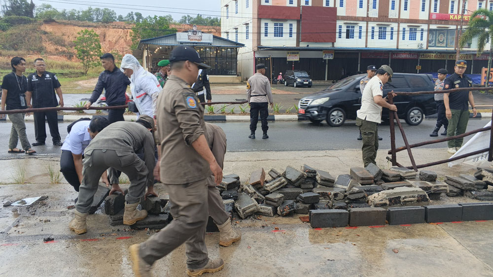 TANJUNGPINANG (BP) – Pagar pembatas di Jalan D.I Panjaitan, tepatnya di depan pabrik Prendjak, kembali dibongkar petugas Satpol PP Tanjungpinang. Pembongkaran dilakukan setelah pagar yang sebelumnya telah ditertibkan, kembali muncul di lokasi yang sama.