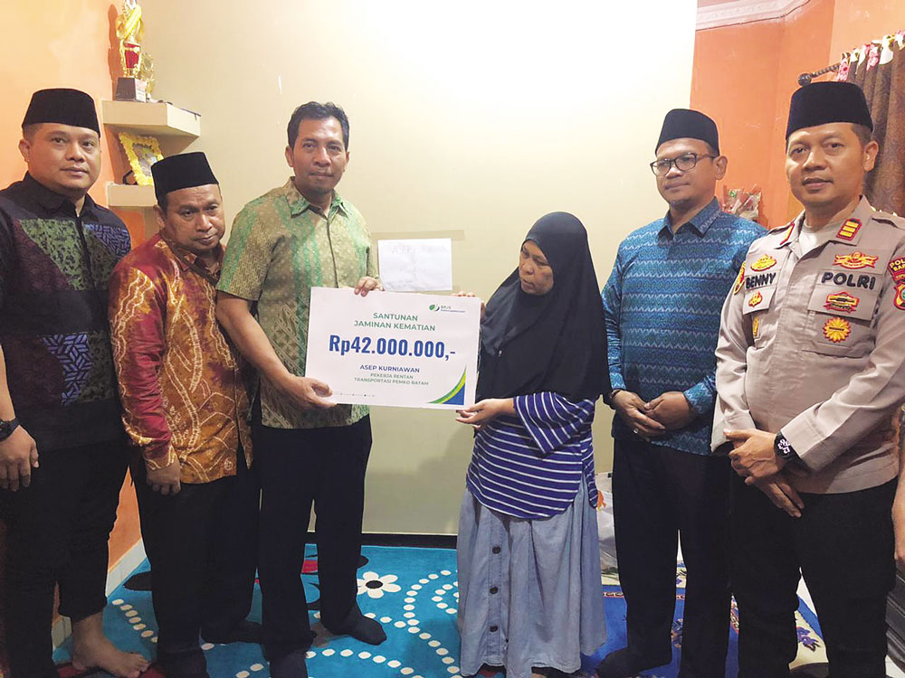 BATUAMPAR (BP) – Pemerintah Kota Batam bersama BPJS Ketenagakerjaan menyerahkan santunan Jaminan Kematian (JKM) sebesar Rp42 juta kepada ahli waris Asep Kurniawan, pengemudi ojek online yang meninggal dunia saat beristirahat di atas sepeda motornya, Minggu (15/2).