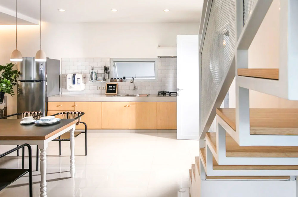 3. Luas lahan yang terbatas untuk memenuhi di rumah minimalis menghilangkan sekat ruangan di lantai dasar dan memilih konsep open plan sebagai solusinya.