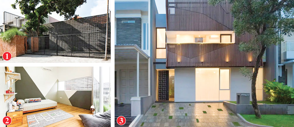 Untuk meredam kebisingan yang datang dari luar bangunan sekaligus menciptakan privasi – kebetulan inspirasi rumah minimalis ini berhadap-hadapan langsung dengan bangunan sekolah dasar – tim Somia Design memutuskan untuk melindungi sekeliling rumah minimalis ini dengan pagar roster.