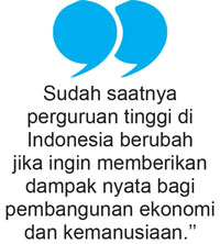 Pada titik inilah riset berdampak (impactful research) menjadi jantung perubahan perguruan tinggi. Sudah saatnya perguruan tinggi di Indonesia berubah jika ingin memberikan dampak nyata bagi pembangunan ekonomi dan kemanusiaan.