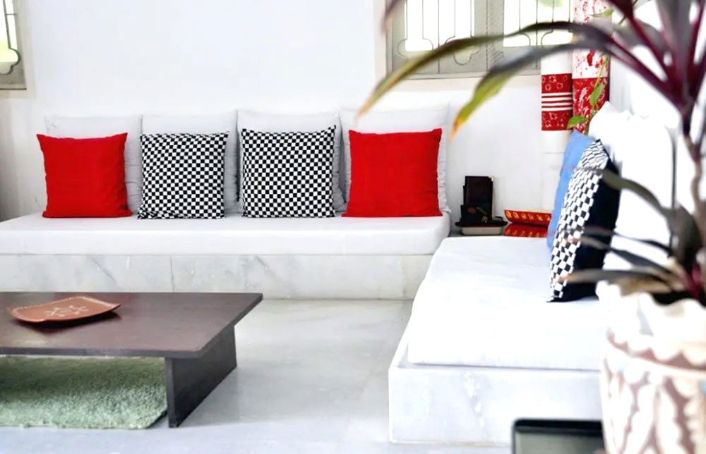 Tipe desain ruang keluarga minimalis Baithak sendiri cocok untuk digunakan baik untuk ruang keluarga minimalis indoor maupun outdoor.