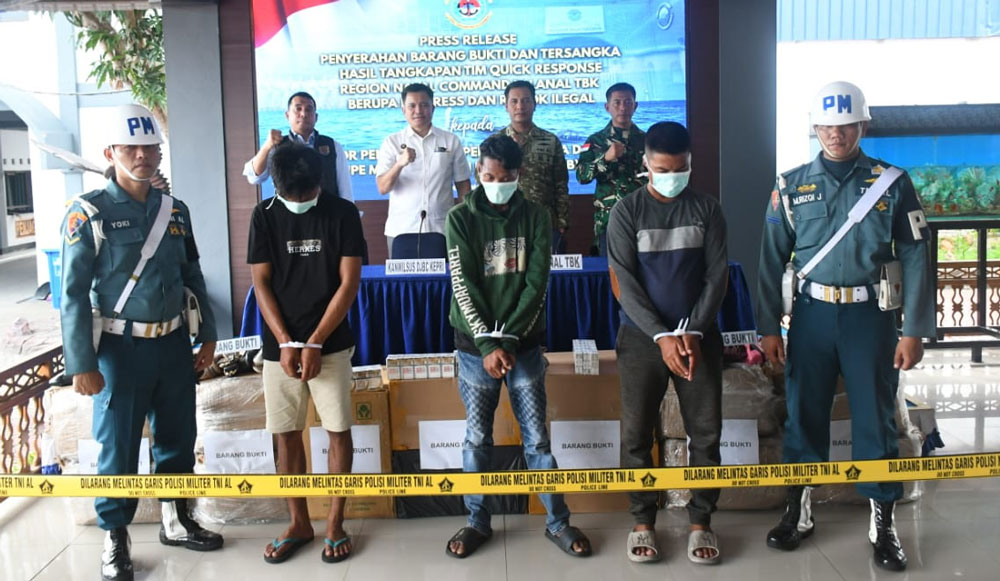KARIMUN (BP) – Tim Quick Response Regional Naval Command IV Lanal TBK bersama Satuan Tugas Operasi Intelmar Mantera Sakti-26 Koarmada I menggagalkan upaya penyelundupan barang bekas dan rokok ilegal tanpa pita cukai, Sabtu (28/2).