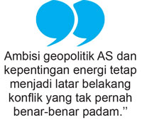 Secara geopolitik, AS memandang Iran selama puluhan tahun sebagai ’’duri terakhir’’ bagi dominasi penuh AS-Israel di Timur Tengah setelah Iraq, Libya, dan Syria melemah.