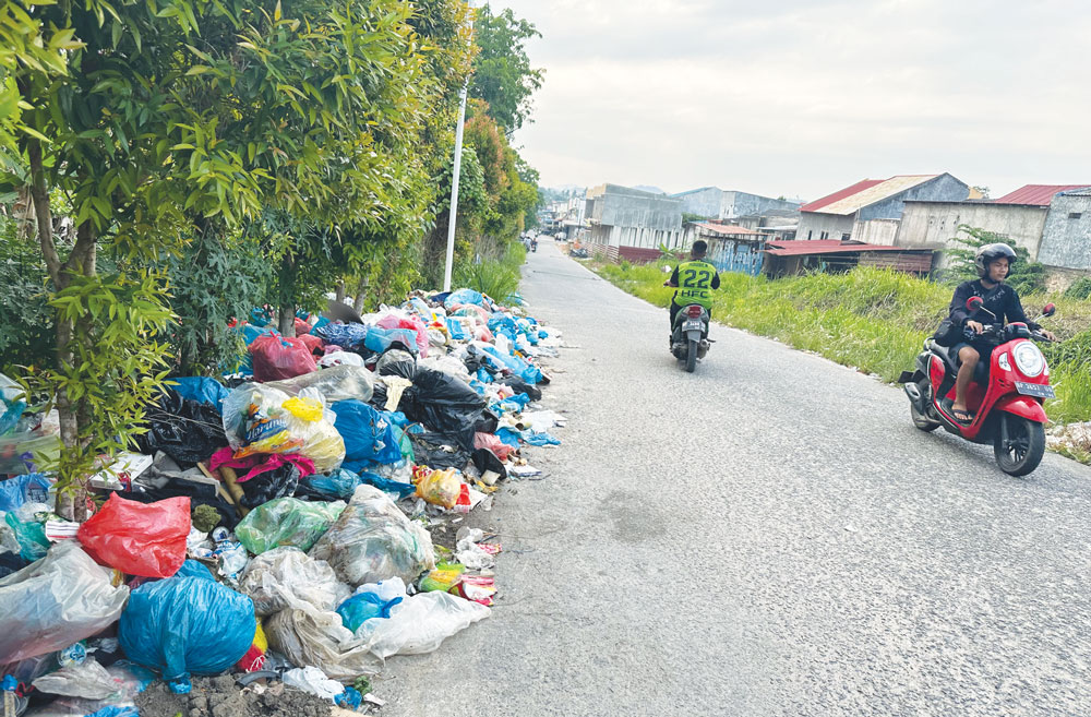 Kondisi serupa juga terlihat di sepanjang Jalan Sei Binti. Tumpukan sampah bahkan mengular hingga lebih dari 100 meter ke arah kawasan Horizon Dapur 12.