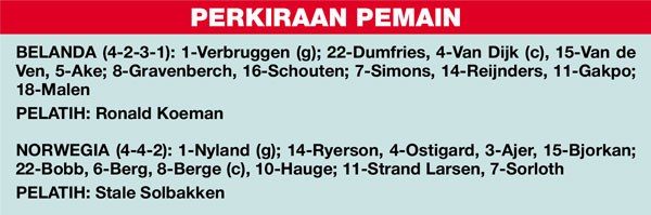 Makanya, ketika Memphis dan Haaland absen dalam uji coba di Johan Cruijff ArenA, Amsterdam, dini hari nanti (siaran langsung Sportstars 4/Vision+ pukul 02.45 WIB), itu jadi tantangan Belanda-Norwegia dalam mencari substusi.