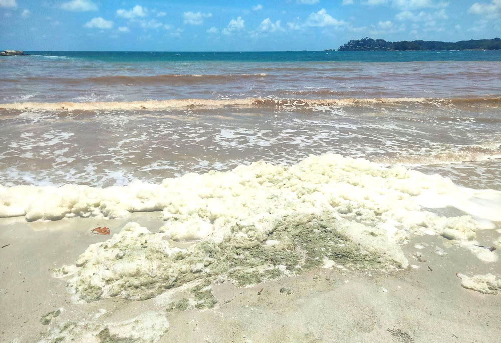Sebelumnya, fenomena ini sempat viral setelah terlihat hamparan zat berwarna putih kehijauan memenuhi garis pantai dan terbawa ombak hingga ke bibir pantai.