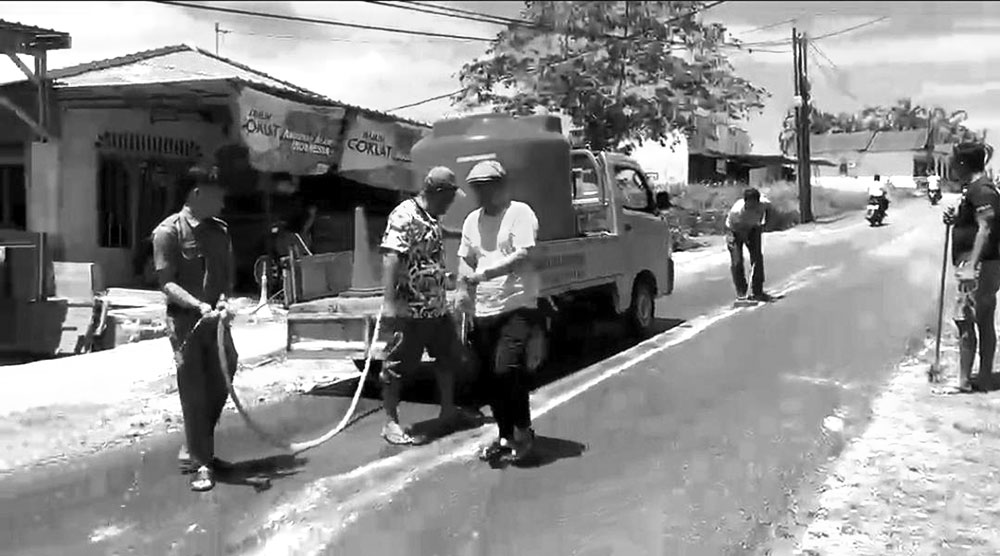 Pemdes Teluk Sasah Gerak Cepat Bersihkan Jalan