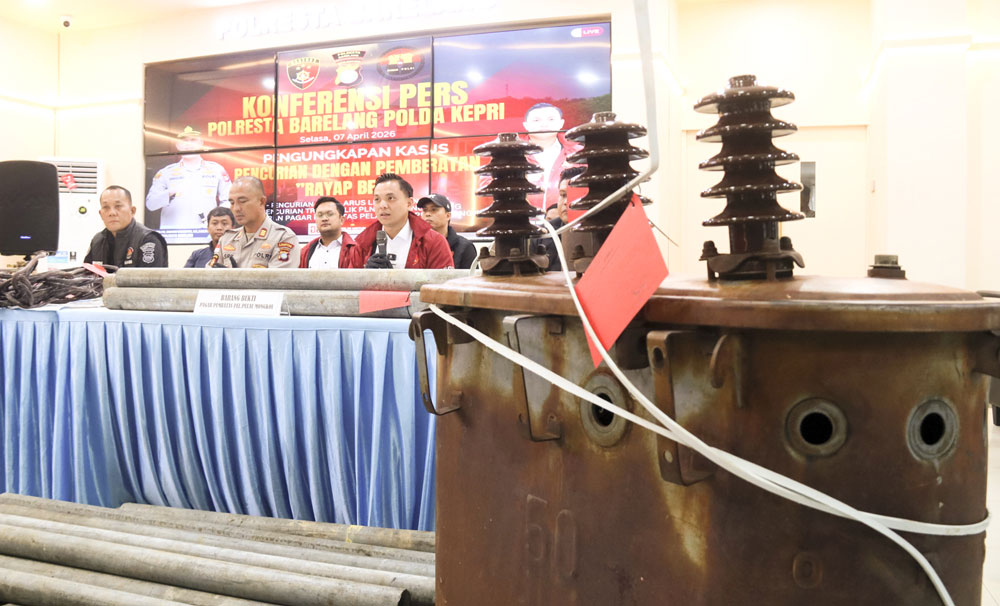 SATUAN Reserse Kriminal (Satreskrim) Polresta Barelang mengungkap jaringan pencurian dengan pemberatan yang menyasar fasilitas publik, mulai dari kabel listrik, trafo, hingga besi pembatas pelabuhan. Pengungkapan tersebut disampaikan dalam konferensi pers yang dipimpin Kasat Reskrim Kompol M. Debby Tri Andrestian didampingi Kapolsek Belakangpadang AKP Asril, Selasa (7/4).