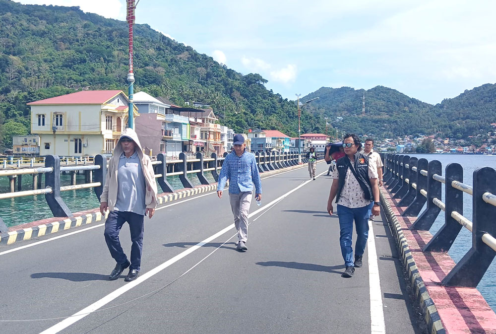 Dari atas pompong, penyidik meneliti kondisi tiang pancang, sambungan konstruksi, hingga bagian bawah dek jembatan guna memastikan kesesuaian antara kondisi fisik dengan dokumen proyek.