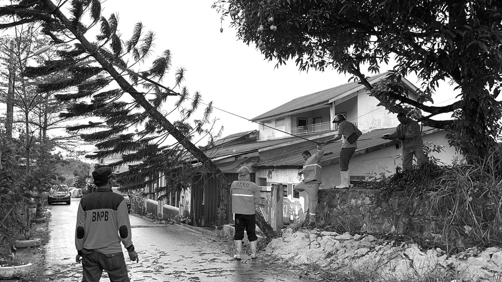 “Setelah menerima laporan, kami langsung melakukan evakuasi pohon tumbang. Ada tiga lokasi,” ujarnya.