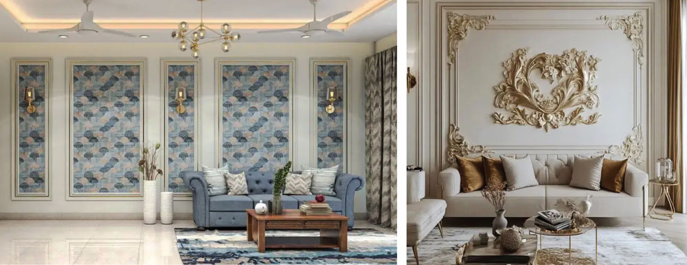 TAK hanya tampil sederhana dalam bentuk geometris, wall moulding juga bisa hadir dengan detail ukiran khas yang memberi kesan mewah. Hasilnya, ruang tamu terlihat lebih estetik tanpa terkesan berlebihan.