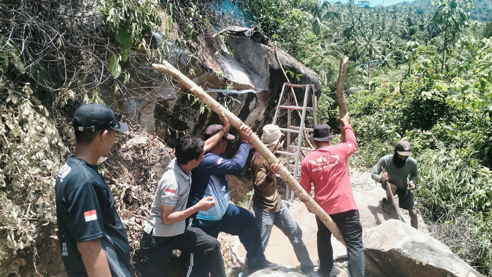 Dalam kegiatan itu, warga bersama aparat setempat memecahkan dua batu besar yang selama ini berpotensi membahayakan pengendara. Selain itu, rumput ilalang di sepanjang jalan juga ditebas agar tidak mengganggu pandangan.