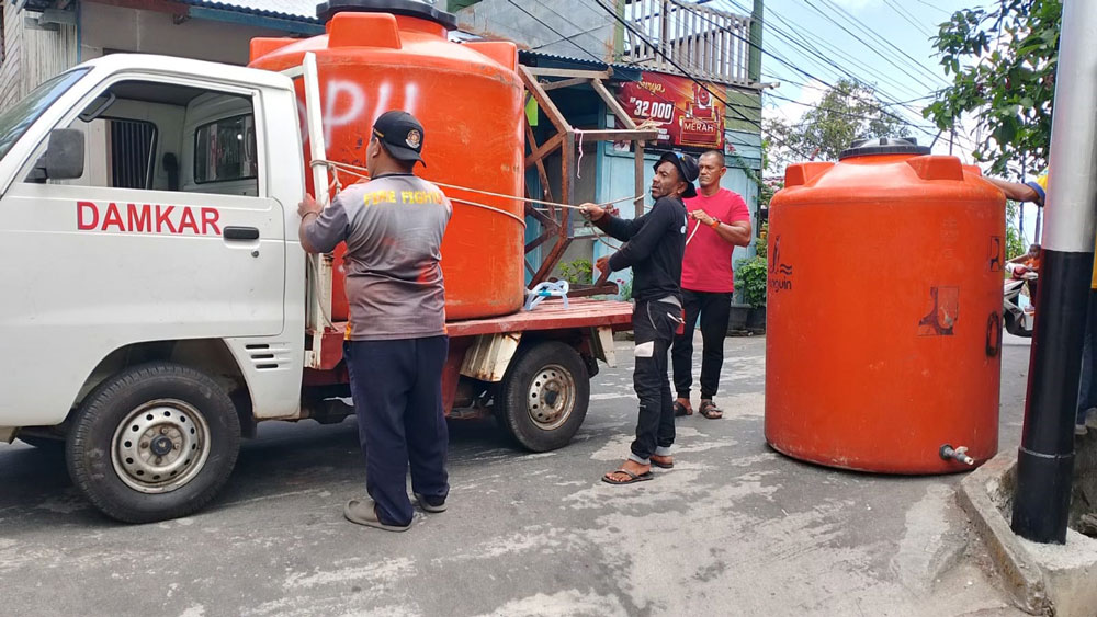 “Ada beberapa permukiman yang sulit ditempuh kendaraan. Untuk itu, air kami distribusikan ke tangki atau toren yang telah disediakan, sehingga warga bisa mengambil langsung dari sana,” jelasnya.